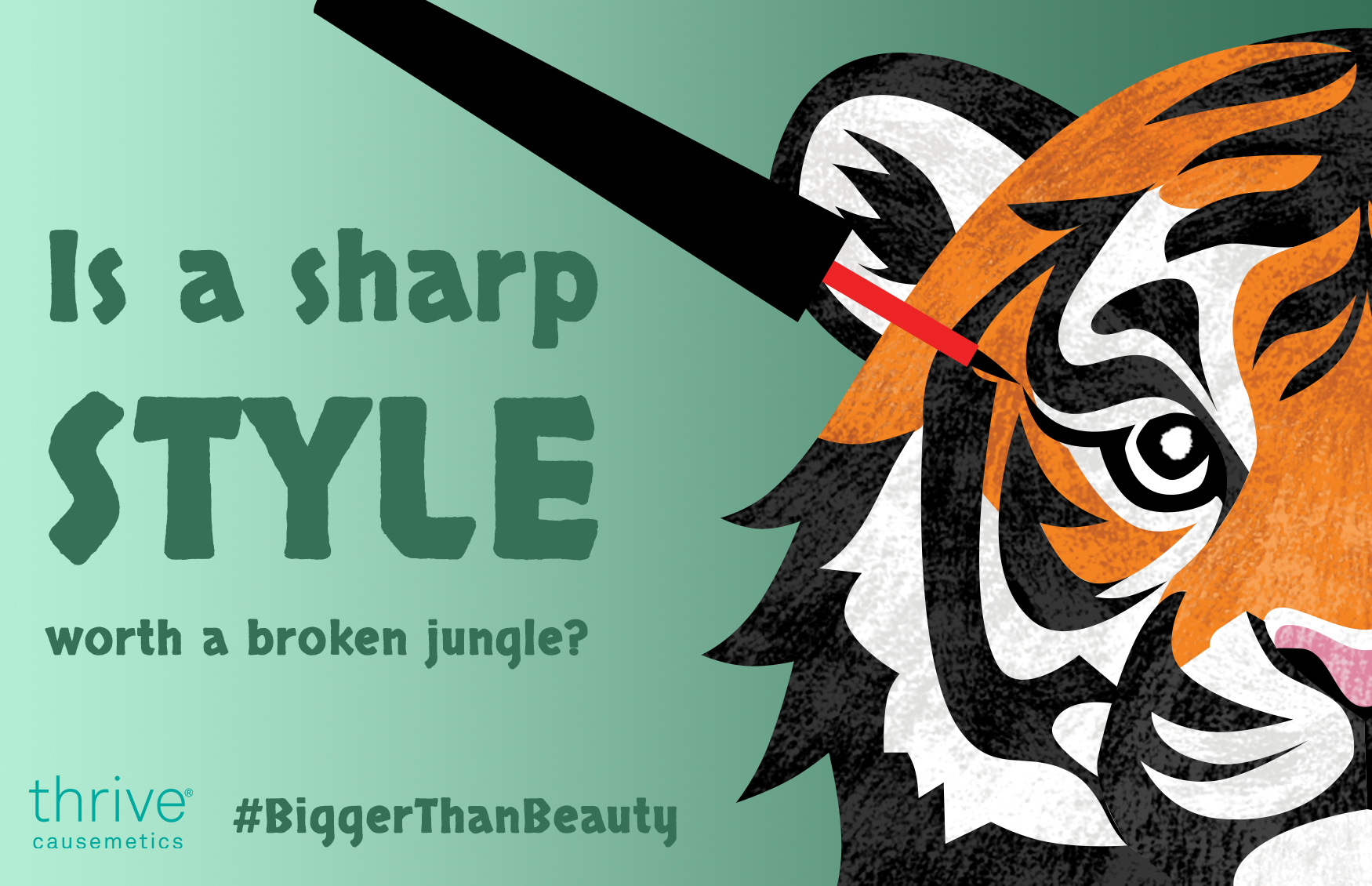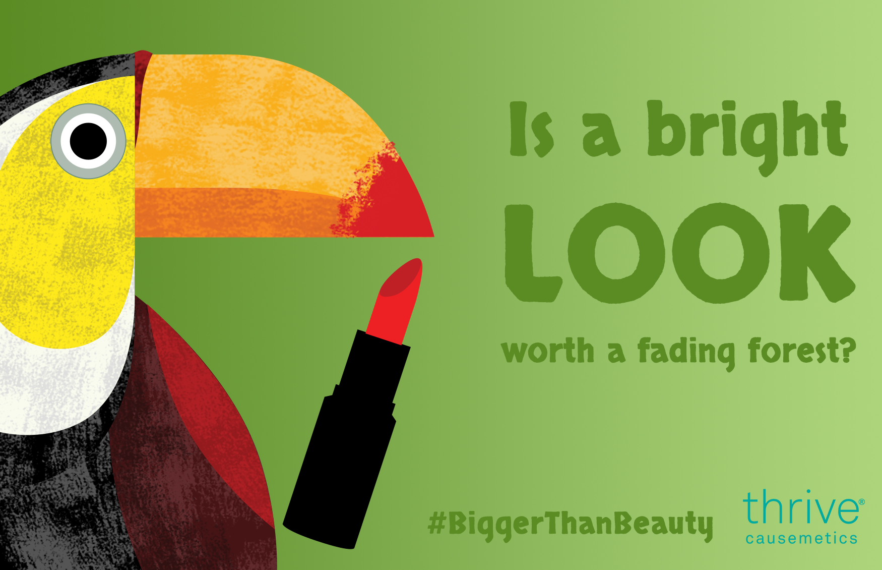 Palm oil contributes to 2.3% of deforestation. It leads to the loss of biodiversity, as it destroys habitats for countless species, putting them at risk of extinction. Inspired by the natural beauty of animals, Thrive causemetics wants to spread the word about the effects palm oil extraction has on it’s habitats. I wanted a similar color pallet to Thrive but relate it more to nature and the animals being shown are animals that are naturally beautiful and are being affected by deforestation.