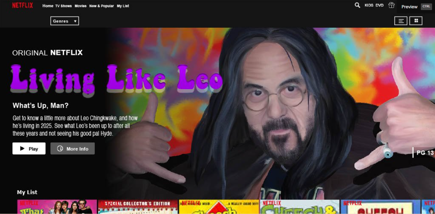 That 70s Show is a TV series that focuses on the lives of a group of six teenage friends living in the fictional town of Point Place, Wisconsin. Tommy Chong is featured as a Leo: the owner of a Foto Hut and friend to the main group of teenagers. Living like Leo is a spin off of That 70s Show and focuses solely on Leo. The tie-dye background indicates Leo’s down to earth lifestyle and his hippie personality.